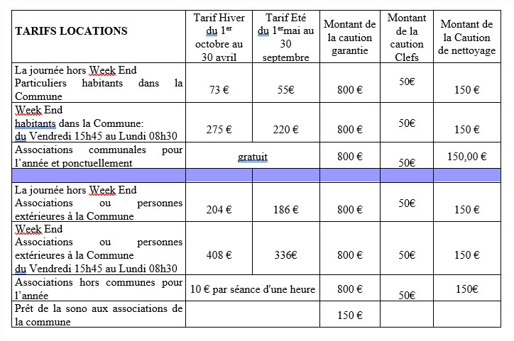La période de location de cette salle pour les week-ends est du 1er septembre au 30 juin.
